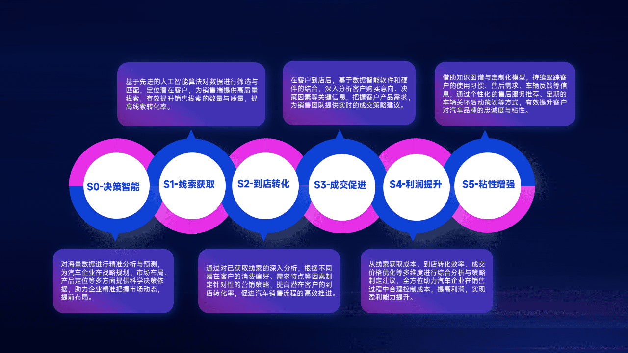 通过拓宽潜在客户来源、、、、优化线索分配并提高到店转化率,,,,以增强销售效率。。同时,,,利用线索数据不断优化分析模型,,,有效提升转化率,,,扩大营销影响力。。。。